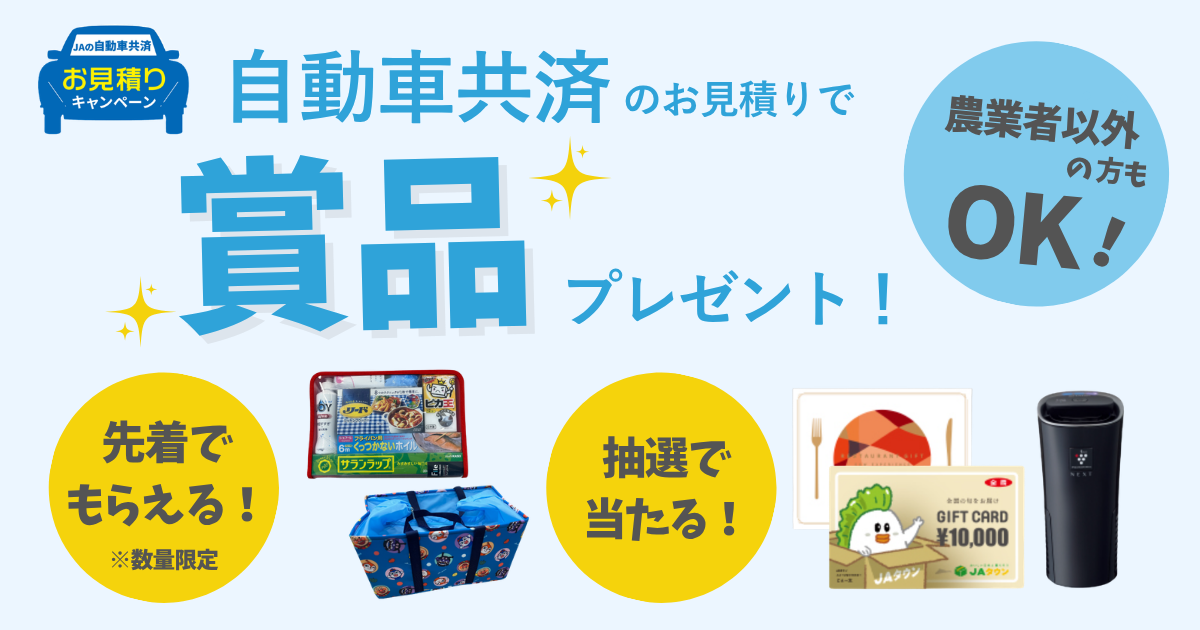 自動車共済のお見積りをしていただき、別途、全国共済農業協同組合連合会(JA共済連)が運営する所定のフォームから応募いただいた方