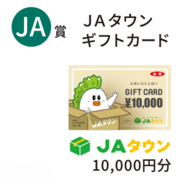 A賞:レストランギフト券…100名様(各期25名様)/B賞:SHARP イオン発生機…400名様(各期100名様)/JA賞:JAタウン ギフトカード…500名様(各期125名様)